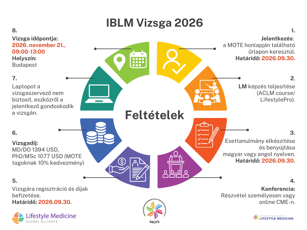 • kongresszusi részvételről illetve a befizetésről az igazolást legkésőbb 2026.09.30-ig az esettanulmánnyal együtt EGY e-mailben az iblmvizsga@eletmodorvostan.hu címre, a tárgyban a vizsgajelölt nevével kérjük megküldeni